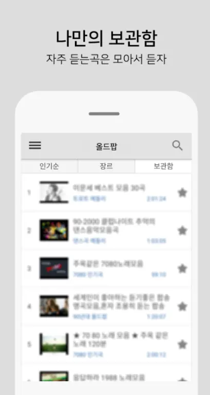 좋아하시는 곡은 보관함에 담아두고 편하게 들을 수 있습니다.
